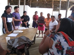 Momento da conversa com as mulheres da comunidade do Balaio junto ao Dep.de Mulheres eo representante da loja Wariró.