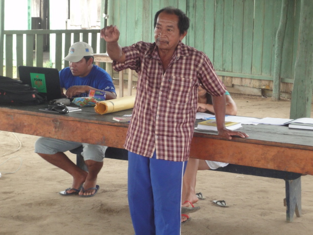 A coordenação da Oficina, na comunidade Cartucho, aproveitou a passagem (pernoite) do Higino, que estava indo para a Oficina sobre Direitos da Mulher em Santa Isabel, para contar e contribuir com sua rica experiência, como professor e liderança indígena.