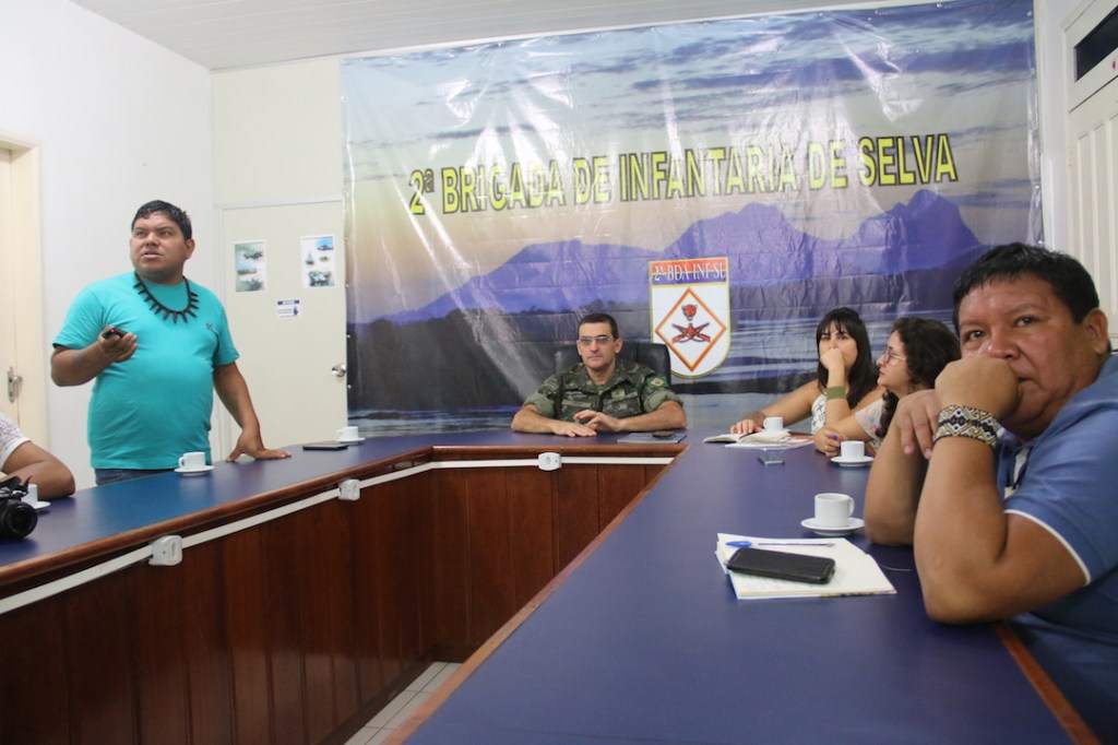 O general Omar Zendim, da 2ª Brigada de Infantaria da Selva em São Gabriel da Cachoeira (AM), recebeu a delegação da Foirn (Federação das Organizações Indígenas do Rio Negro), nesta última quinta-feira, dia 25 de agosto, para uma apresentação sobre as atividades realizadas pela entidade na Bacia do Rio Negro, assim como novos projetos em desenvolvimento, como os de turismo de base comunitária em terra indígena.
