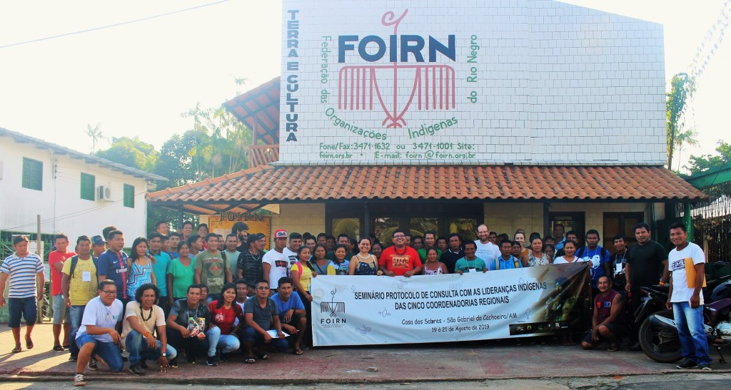 Nós povos indígenas do Rio Negro de 8 Terras Indígenas e outros territórios em diferentes estágios dos processos de demarcação, representando as 5 Coordenadorias Regionais da Federação das Organizações Indígenas do Rio Negro – FOIRN, nos municípios de São Gabriel da Cachoeira, Santa Isabel do Rio Negro e Barcelos, noroeste do estado Amazonas, Brasil, reunidos no período de 19 a 21 de agosto de 2019, durante o I Seminário Protocolo de Consulta dos Povos Indígenas do Rio Negro, realizado na Casa do Saberes, em São Gabriel da Cachoeira – AM, viemos através desta, manifestar sobre a nossa forma própria de organização e a nossa forma legítima de representação, levando em consideração a manutenção da autonomia e da autodeterminação dos povos indígenas, com base na Constituição Federal de 1988, artigo 231 e 232, Convenção n. 169 da OIT sobre Povos Indígenas e Tribais – Decreto 5.051 de 2004, Declaração das Nações Unidas sobre os Direitos dos Povos Indígenas (ONU, 2007) e Declaração Americana sobre os Direitos dos Povos Indígenas (OEA, 2016).
