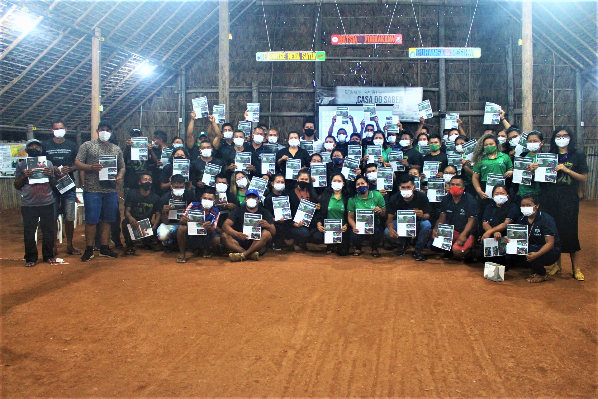 Professores e jovens de Iauaretê apresentam certificado de participação de oficinas realizadas na Escola Pamuri Mahsã Wi´i. Foto: Eucimar Aires/Foirn