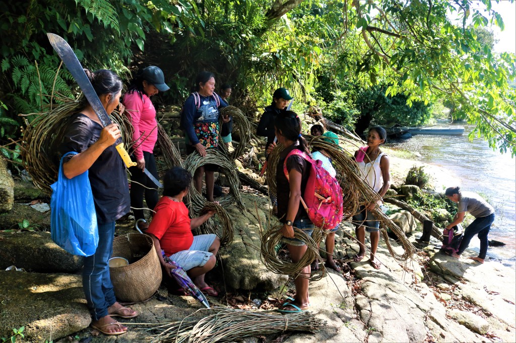 Mulheres Hupdah e Tukano buscando cipó titica durante a oficina realizada na Iauaretê. Foto: Larissa Duarte/Foirn