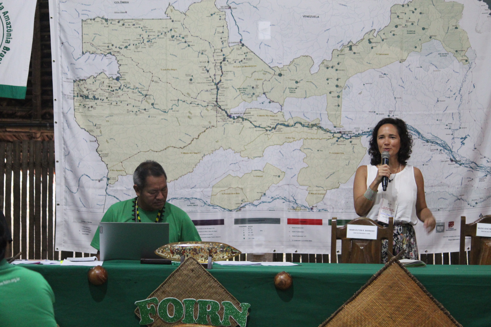 A representante do ISA, Juliana Radler apresentou os trabalhos realizados na Reunião de planejamento integrado dentro do protocolo de consulta, planejamento conjunto FOIRN/ISA, apresentação de departamentos da FOIRN com coordenadores regionais e equipe técnica de parceiros do Instituto Socioambiental-ISA. Apresentação de conjuntura institucional conforme planejamento interno realizado por ambas instituições.