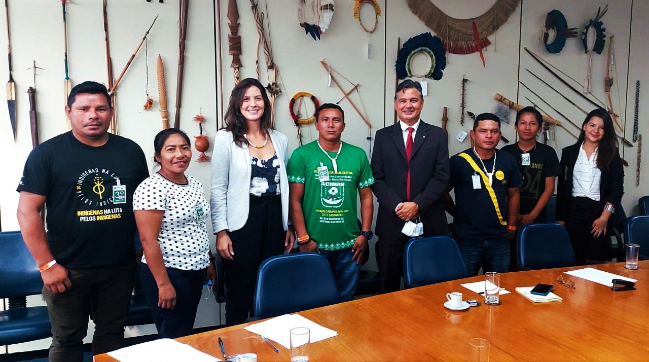 A delegação da FOIRN, representada pela liderança Adilson da Silva Joanico do Povo Baniwa, presidente da Associação das Comunidades Indígenas do Médio Rio Negro (ACIMIRN), esteve presente junto com a assessoria jurídica do ISA, Renata Vieira e Juliana Batista, em audiência com o Desembargador João Moreira, e o Procurador Regional da República, Felício Pontes Junior.