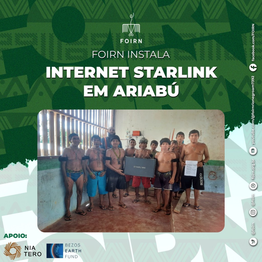 A Federação das Organizações Indígenas do Rio Negro (FOIRN) realiza mais três instalações de internet via satélite Starlink. Com muito orgulho e honra, anunciamos mais uma conquista dos povos indígenas em suas comunidades. Graças ao plano de Gestão Territorial e Ambiental das comunidades indígenas do Rio Negro, com o total apoio generoso da Nia Tero e Bezos Earth, agora estão conectados à internet para uso coletivo do movimento indígena.