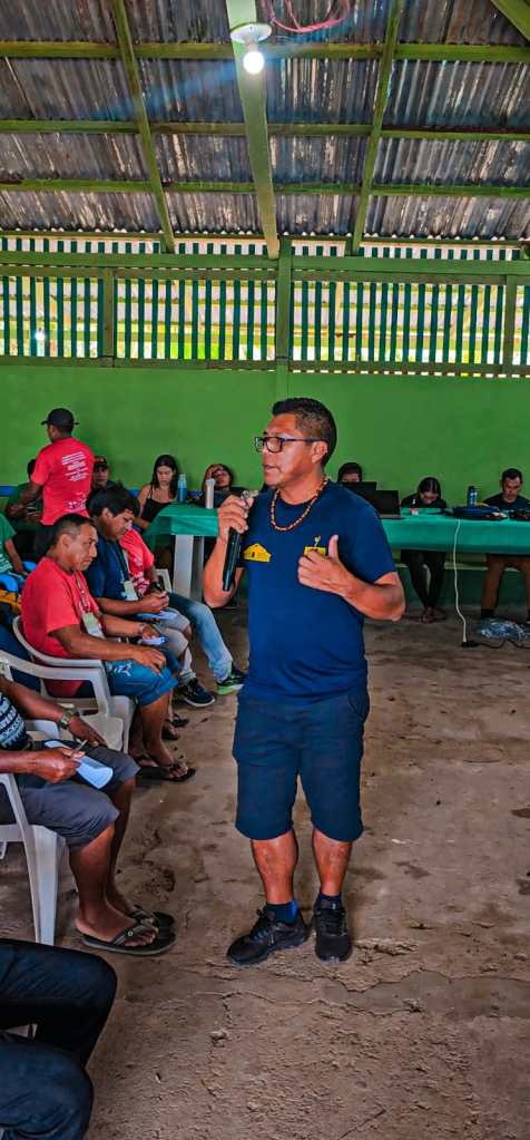 A Federação das Organizações Indígenas do Rio Negro (FOIRN), representado por seu diretor presidente e de referencia da região da Coordenadoria das Associações Indígenas do Médio e Baixo Rio Negro (CAIMBRN), Marivelton Barroso do povo Baré, participa da reunião do Conselho da Associação Kurikama Yanomami, no rio Marauiá, na aldeia Bicho Açú, sede da associação.