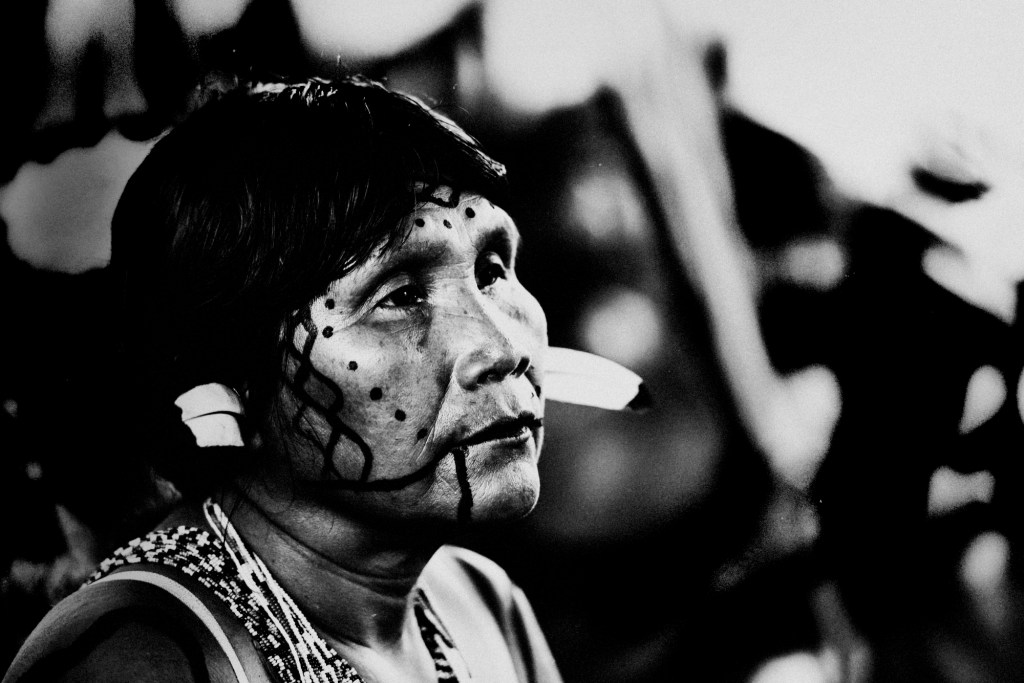 Índia Yanomami com pintura e ornamentos na Assembléia da AYRCA (Associação Yanomami do Rio Cauaburis e Afluentes)