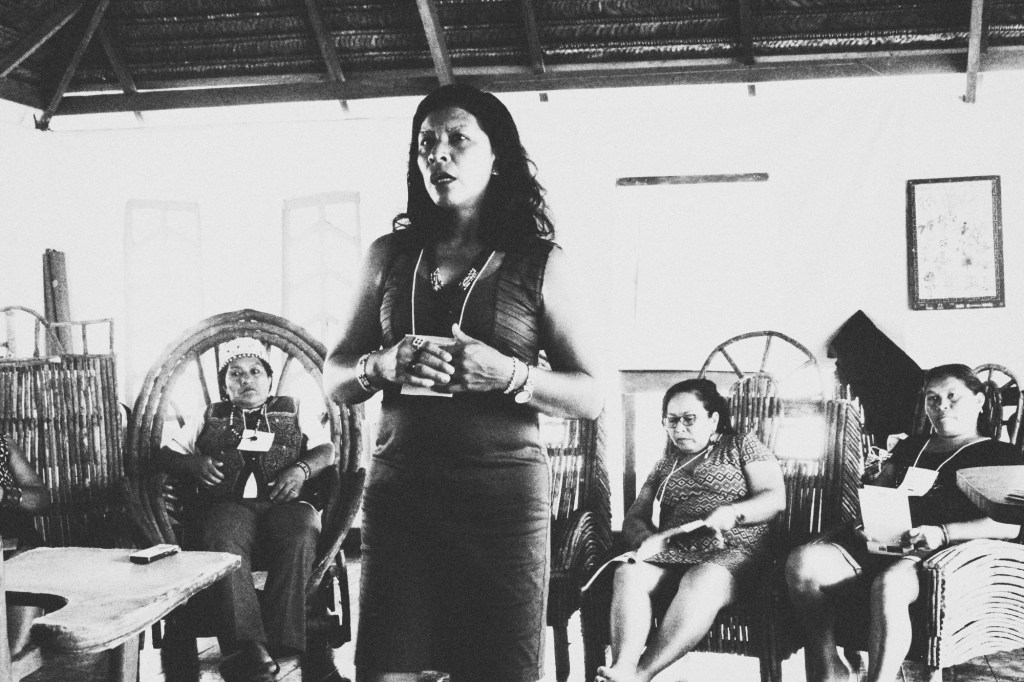 Almerinda Ramos fala sobre gestão territorial e ambiental. Mulheres indígenas de 25 diferentes povos da Amazônia, do Brasil e do Peru, participaram de encontro no Centro de Formação dos Povos da Floresta, em Rio Branco, capital do Acre. O intercâmbio aconteceu entre 29 e 31 de agosto de 2017 e teve cerca de 100 participantes. Elas discutiram sua participação na gestão territorial, seu papel na manutenção da língua, questões de saúde, saberes e práticas tradicionais e os espaços de representação política