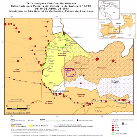 Lideranças indígenas das associações da Região Cué-Cué/Marabitanas, reunidas nos dias 19 e 20 de junho, reforçaram a urgência da conclusão das etapas administrativas finais da demarcação da Terra Indígena Cué-Cué/Marabitanas. A área foi declarada de posse permanente dos povos indígenas pela Portaria nº 1.703 do Ministério da Justiça, de 19 de abril de 2013, e representa um marco na proteção territorial no município de São Gabriel da Cachoeira, consolidando-o como o município com a maior extensão de Áreas Protegidas da União no Brasil.