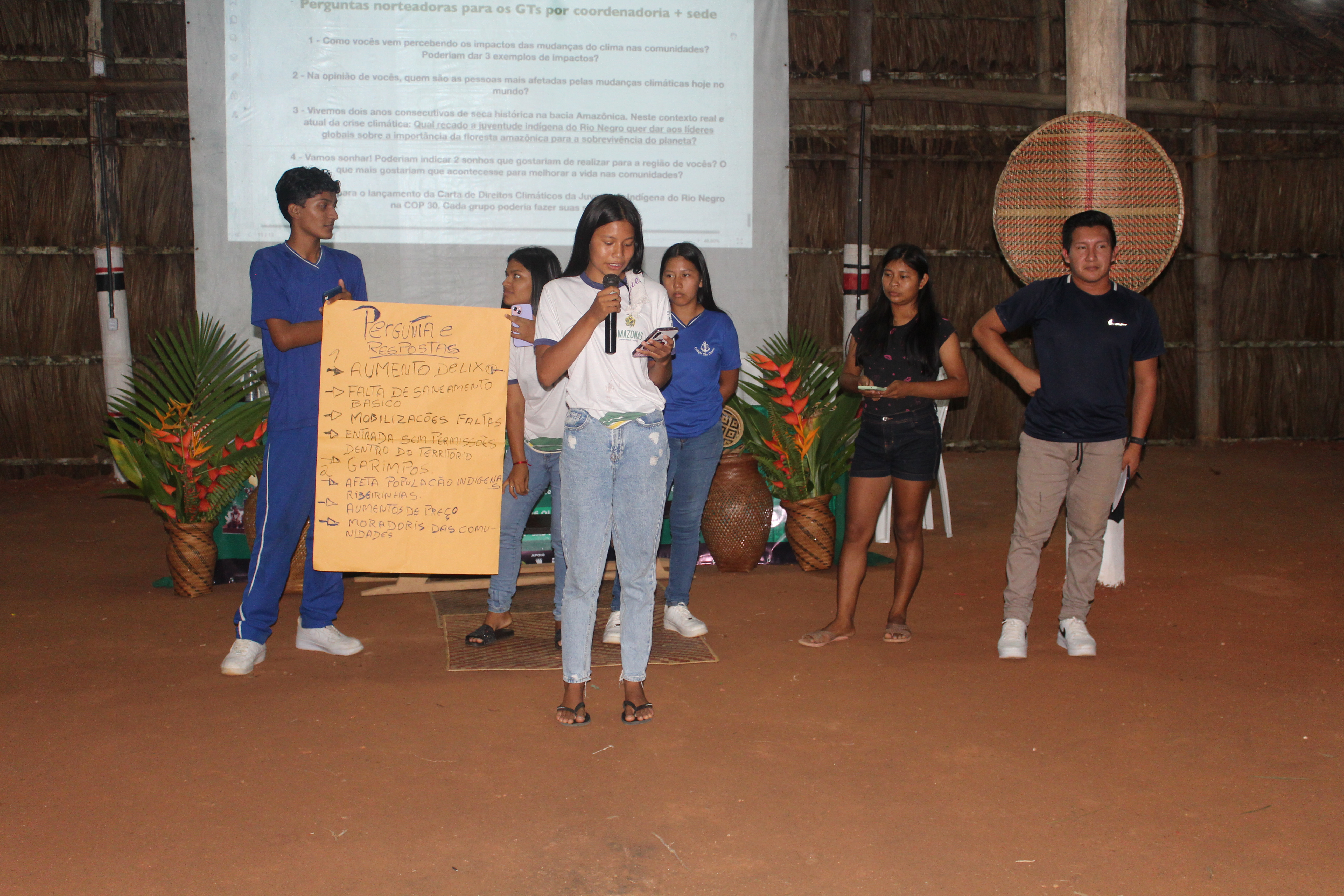 A programação abordou temas de relevância estratégica para a juventude indígena do Rio Negro. Um dos primeiros tópicos discutidos foi o impacto das mudanças climáticas e o racismo ambiental, com a participação da jornalista Juliana Radler, do ISA (Instituto Socioambiental). Ela destacou como os povos indígenas, especialmente os ribeirinhos, são diretamente afetados pelas mudanças no clima e pela destruição ambiental, propondo uma Carta de Justiça Climática a ser enviada à COP30 (30ª Conferência das Partes da Convenção-Quadro das Nações Unidas sobre Mudança Climática) que será realizada em Belém, no estado do Pará, Brasil, neste ano de 2025, esta será a primeira vez que o evento será sediado na região Norte do Brasil, e terá como tema a importância da Preservação da Amazônia e a luta contra as mudanças climáticas.