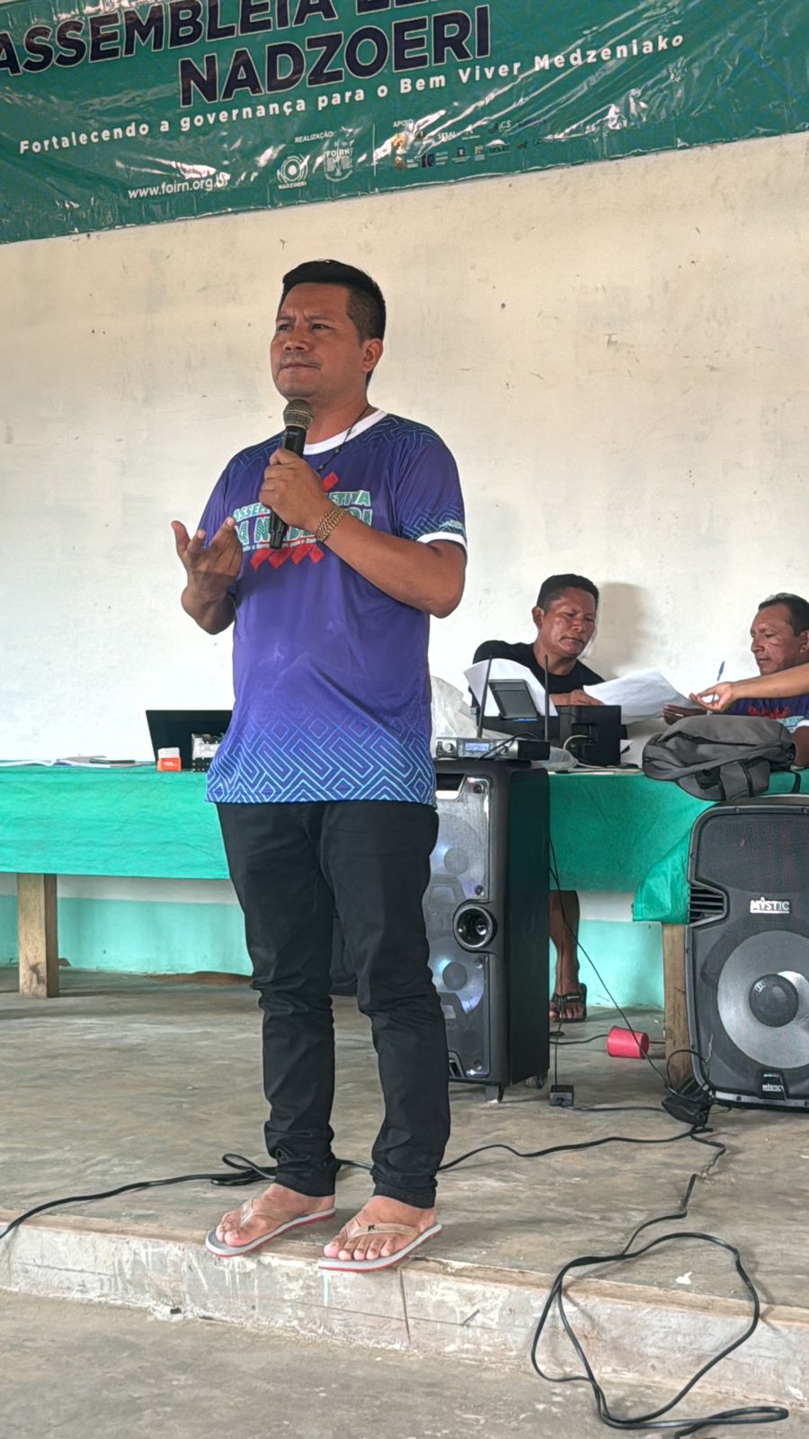 “Estamos aqui hoje, na comunidade de Matapi Cachoeira, para mais um trabalho do nosso movimento indígena. Vamos realizar a assembleia Eletiva da região da coordenadoria Nadzoeri. A nossa expectativa é receber cerca de 200 pessoas para esse momento tão importante. Um momento histórico para o movimento indígena e de poder realizar essa assembleia aqui na região do povo Koripaco no alto Içana. O principal objetivo desse momento é de mobilização social para o fortalecimento da nossa governança, e do nosso território. Então, aqui nós vamos eleger os principais representantes no âmbito da organização Nadzoeri, o nosso representante diretor de referência que estará na diretoria da FOIRN e os demais representantes e articuladores regionais dos departamentos políticos da Federação. Desejarmos às nossas delegações, uma boa estadia na comunidade uma boa discussão durante a Assembleia.” Juvêncio Cardoso Baniwa – Coordenador Regional da Nadzoeri.