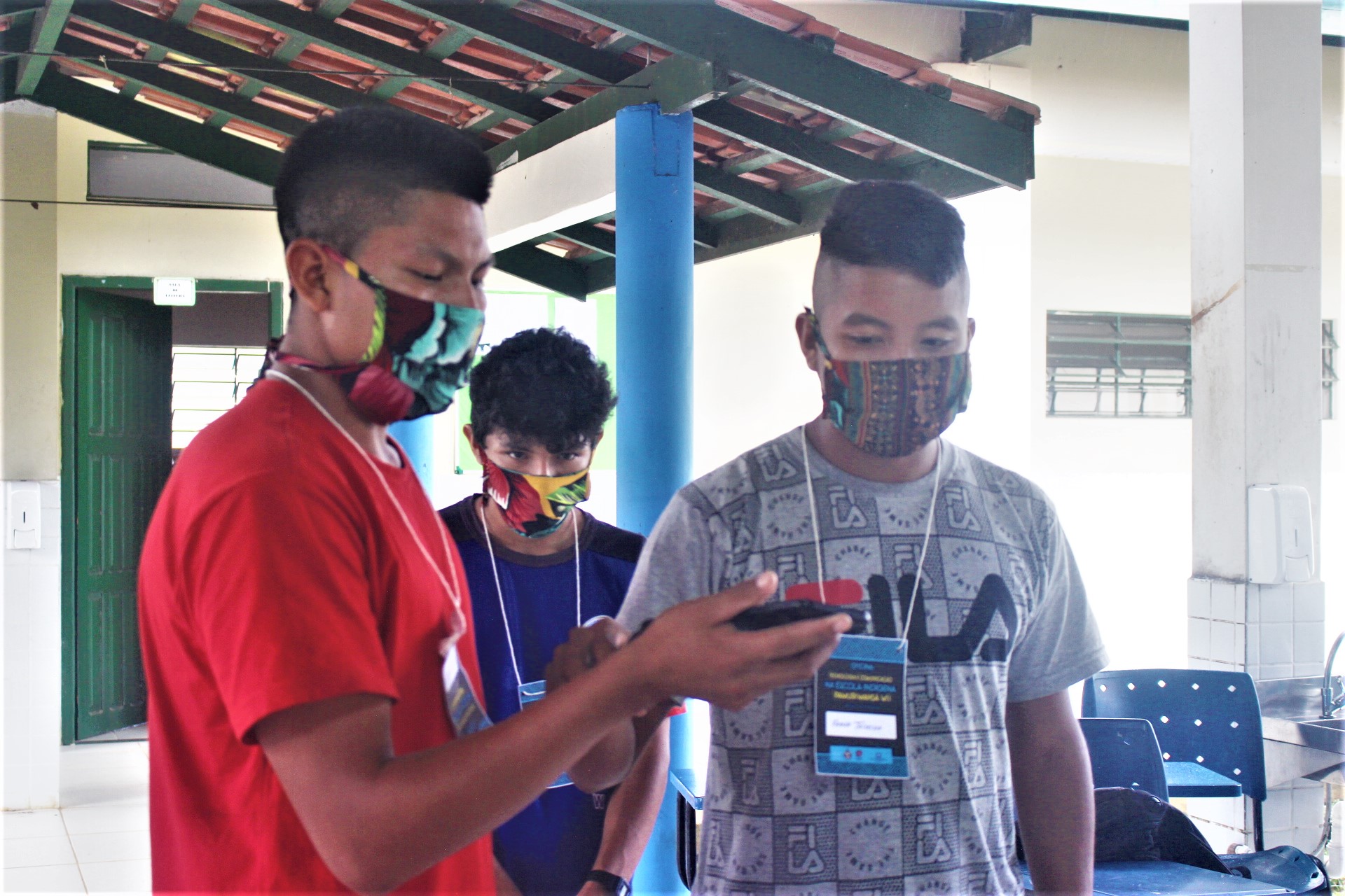 Jovens indígenas de Iauaretê na prática durante a Oficina de Comunicação e Tecnologias. Foto: Eucimar Aires/Foirn
