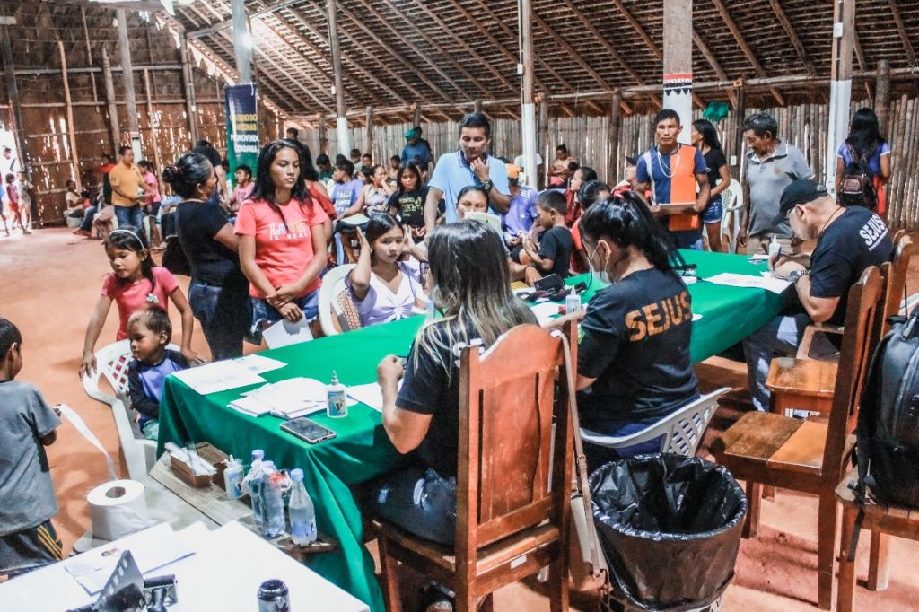 Aconteceu entre os dias 28 de fevereiro a 04 de março de 2023 os serviços de Emissão de identidade 1ª e 2ª via e certidão de nascimento, é uma forma de alcançar os Indígenas que estão distantes dos centros urbanos e garantir que eles tenham os direitos e acesso aos serviços de cidadania.