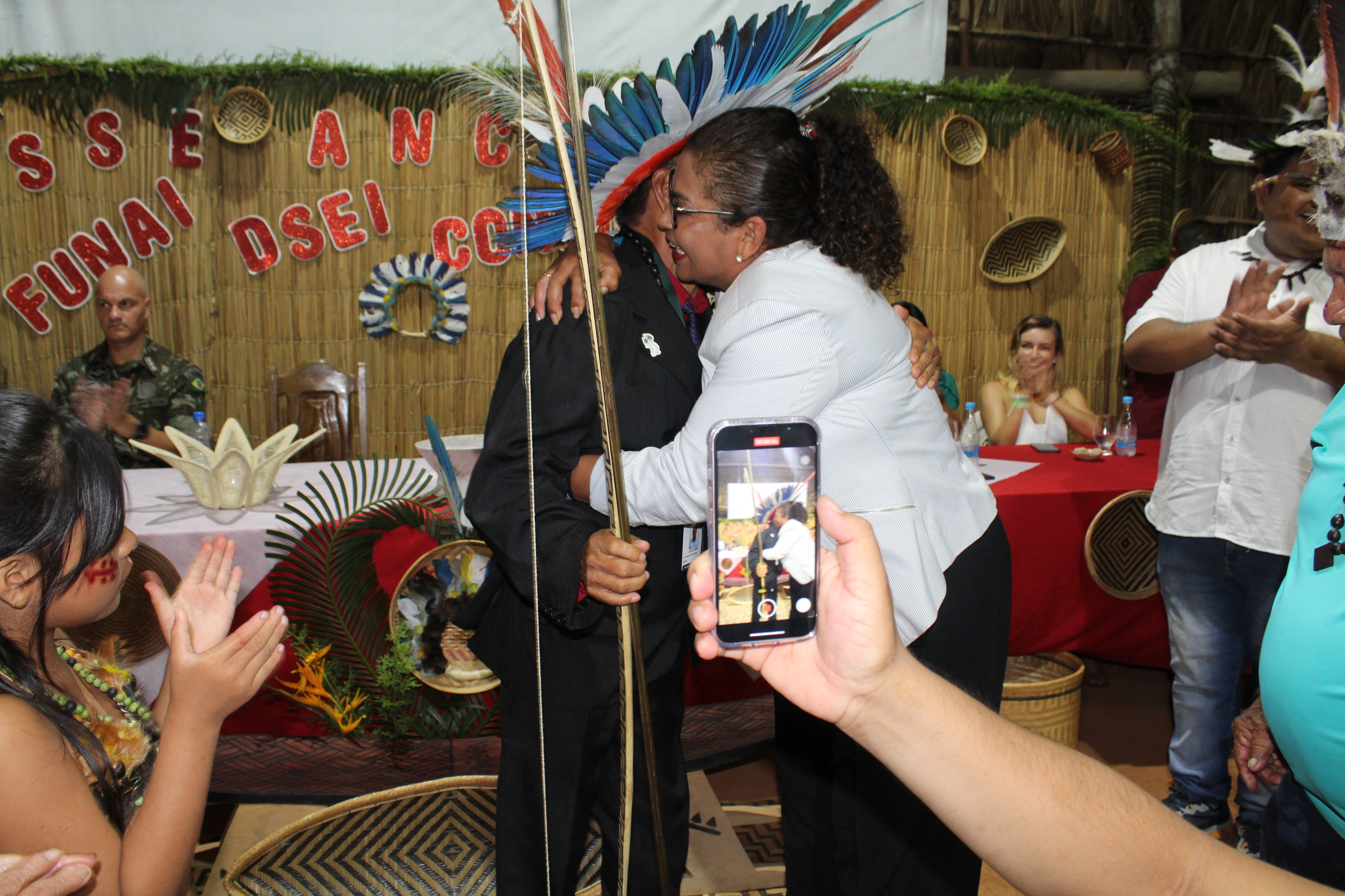 A cerimônia contou com a presença de Joênia Wapichana – presidente da Fundação Nacional dos Povos Indígenas (FUNAI), Carmem Pancararu diretora da Sesai/MS, autoridades do Governo Federal, estadual e representantes de instituições convidadas.